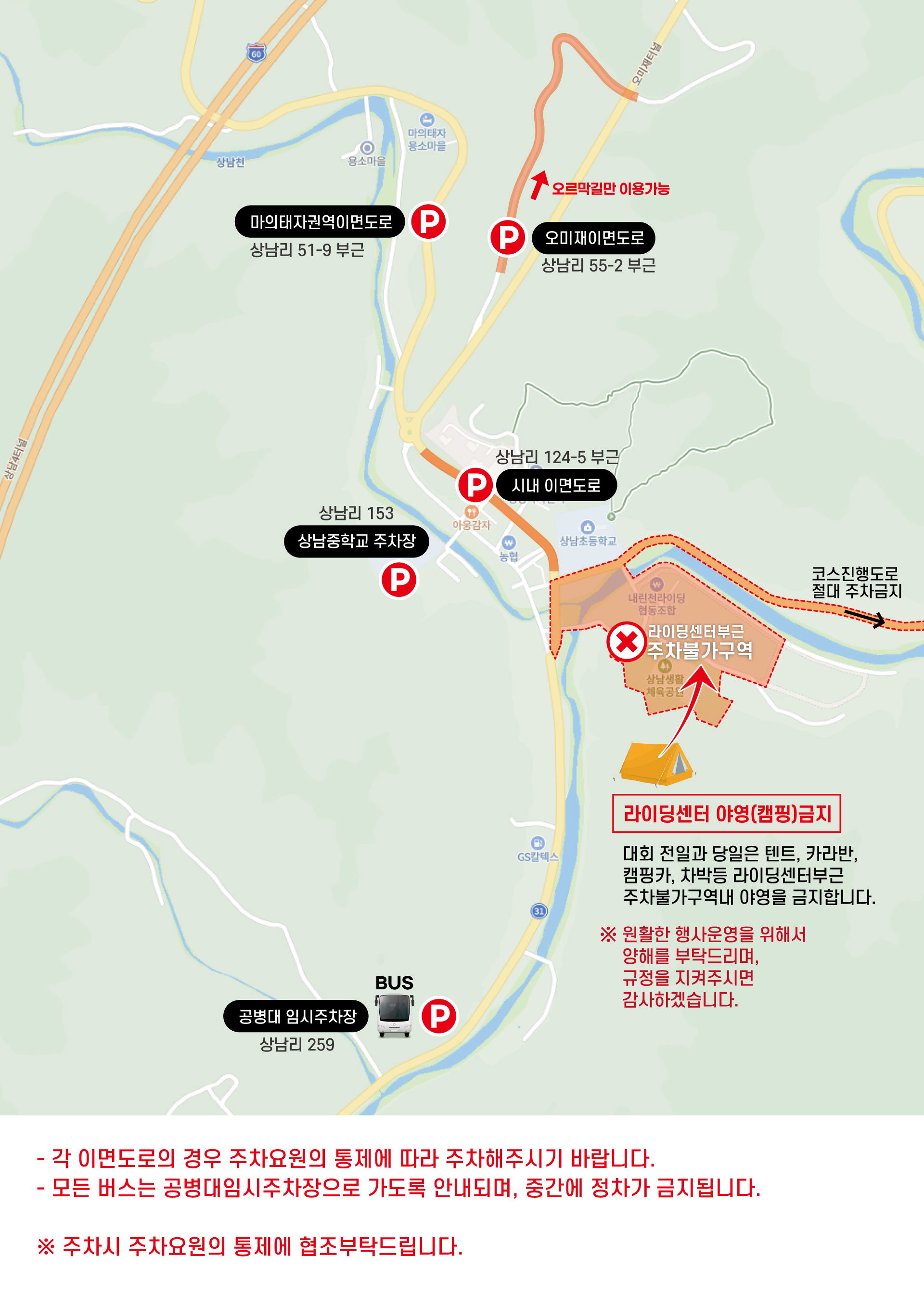 주행사장인 라이딩센터 및 상남생활체육공원에는 주차가 불가합니다.